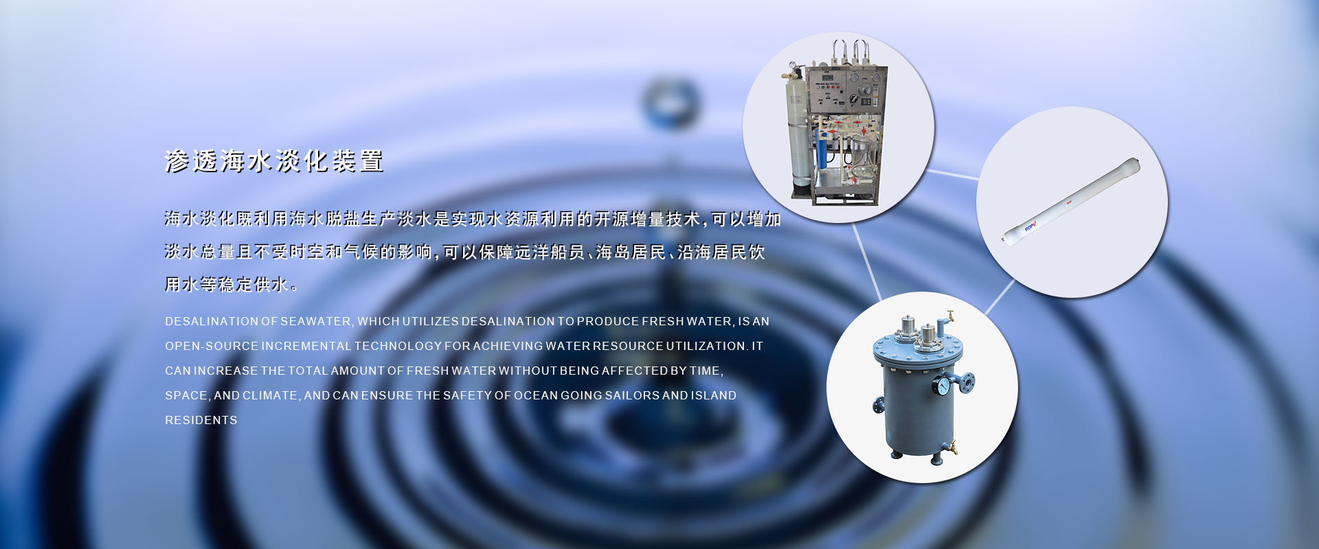 在過去的17年里我們為船舶提供海水淡化設備解決了因船的續航長而不能解決的淡水問題,全球的水資源越來越少,我們以改善遠洋船員、海島居民的生活水資源為已任,以科技創新、誠信經營為核心競爭力。
